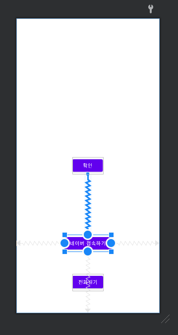 2. 위의 버튼과 동일 선상에 놓여있는 버튼이면 버튼의 위아래 동그라미를 잡아당겨 위아래 간격을 맞출 수 있다.