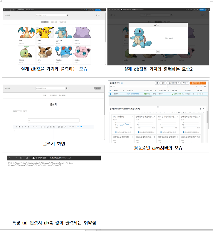 - Amazon Elastic Compute Cloud(Amazon EC2)에서 제공하는 네트워크에서 Linux 운영체제와의 상호 연동과 오픈소스로 개발되는 MySQL을 이용해 Database 구축 이후 서버 호스팅을 통해 웹 사이트를 배포하였다.