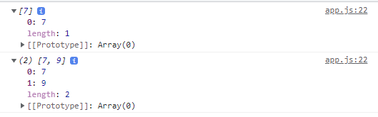 7과 9를 더한 모습이다. 배열에 저장된 값이 모두 출력되는 것을 볼 수 있다.
