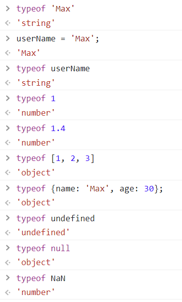 자체 유형이 아니라 숫자 유형이기 때문에 숫자를 사용하는 계산에 사용할 수 있다. 숫자가 포함되지 않은 무언가로 계산을 실행하고자 하는 경우 결과가 NaN으로 나온다. 그 계산의 결과가 유효하지 않다는 의미가 된다.