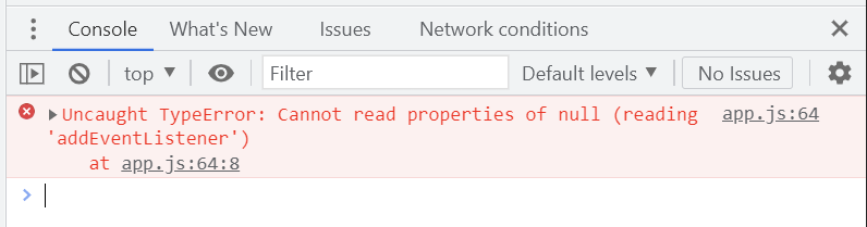 HTML 구문 분석을 시작하면 스크립트를 import해서 다운로드하면 HTML 구문 분석이 일시 정지되고 스크립트 블록이 구문 분석이 되면 스크립트를 실행한 후에만 HTML 구문 분석을 계속한다. 하지만 이때는 다음과 같은 오류가 발생하게 된다.