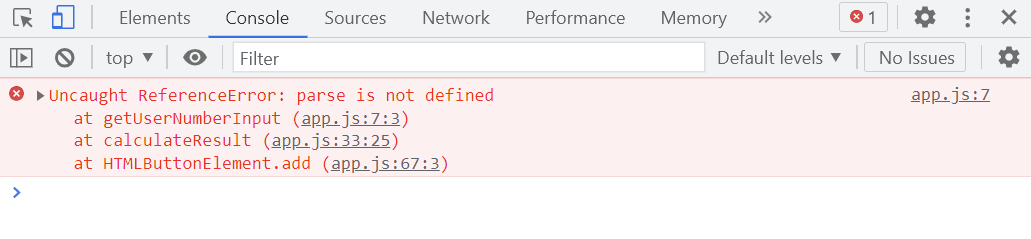 논리가 잘못되어 앱 자체는 작동을 하지만 정상적으로 작동하지 않는 경우이다. 이 경우는 에러메시지도 없어 비교적 오류를 찾기 어려운 경우에 해당한다. 하지만 크롬의 개발자 도구를 사용하면 오류의 해결방안에 대한 도움을 얻을 수 있다.