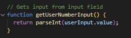 출력 값을 보면 0은 파란색이므로 숫자로 입력되었지만 2는 검은색으로 문자열로 처리가 된 것을 볼 수 있다. 그래서 enteredNumber가 잘못되었다는 것을 알 수 있고 enterNumber는 getUserNumberInput() 함수가 대입된 것이므로 그 함수를 보면 리턴 값을 숫자로 변환을 시켜주지 않았음을 찾을 수 있게 된다.