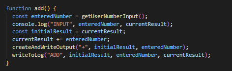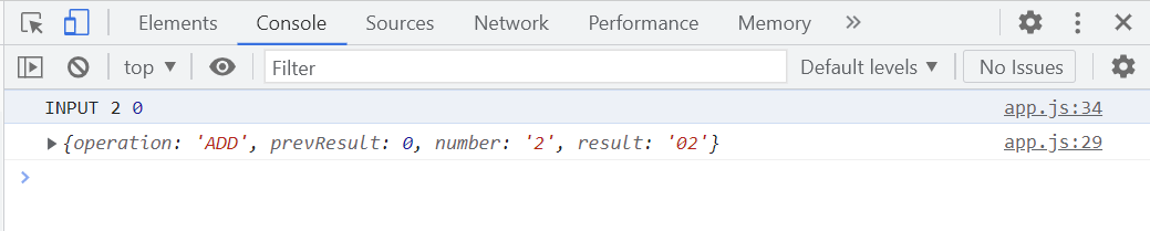 + 버튼을 눌렀을 때 문제가 있으므로 add() 함수에 console.log()를 통해 출력해본다.