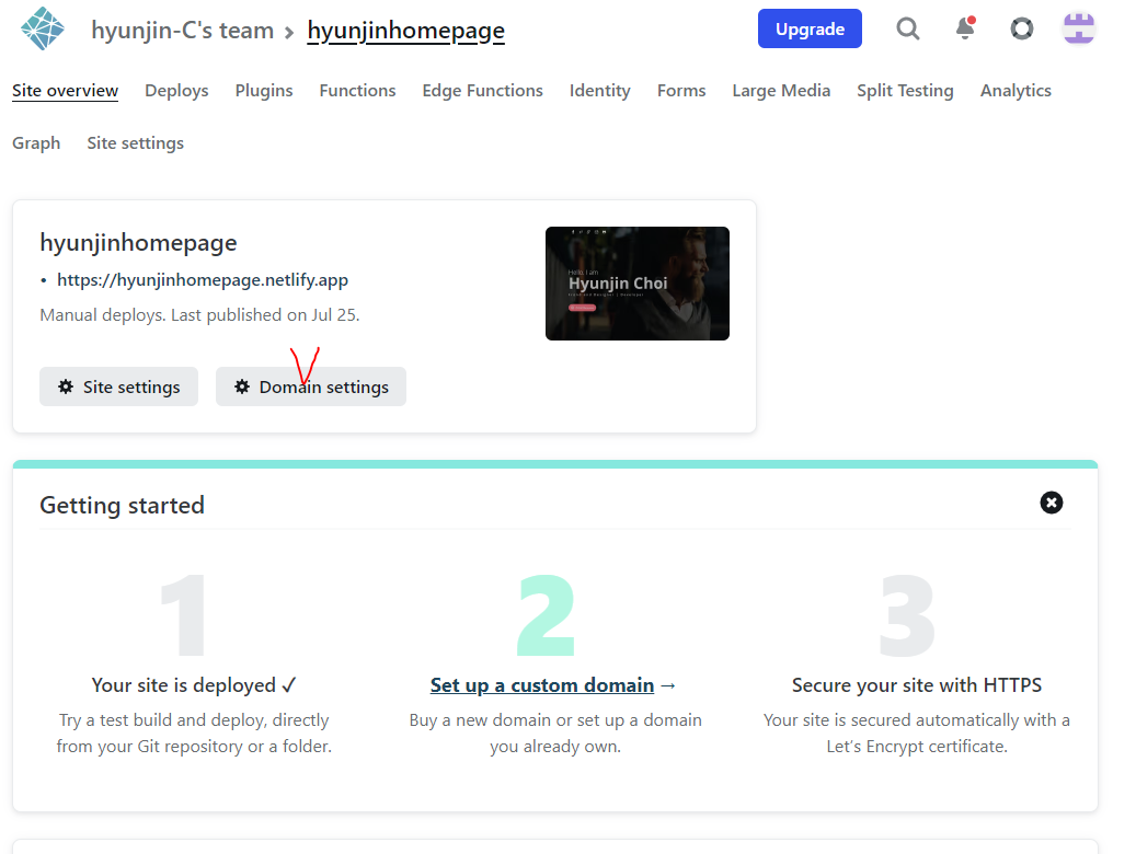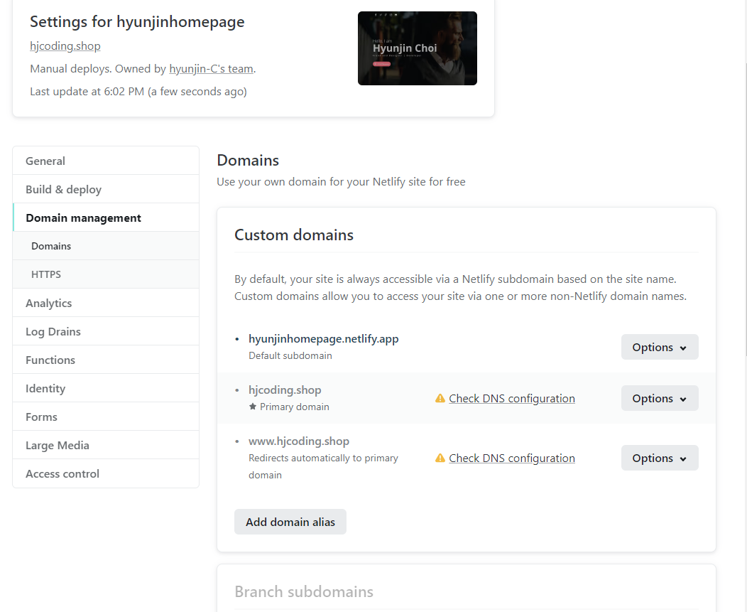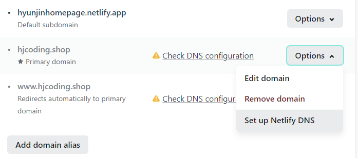 1- 2. 도메인 관리(netlify) : 도메인 연결 및 네임서버 생성