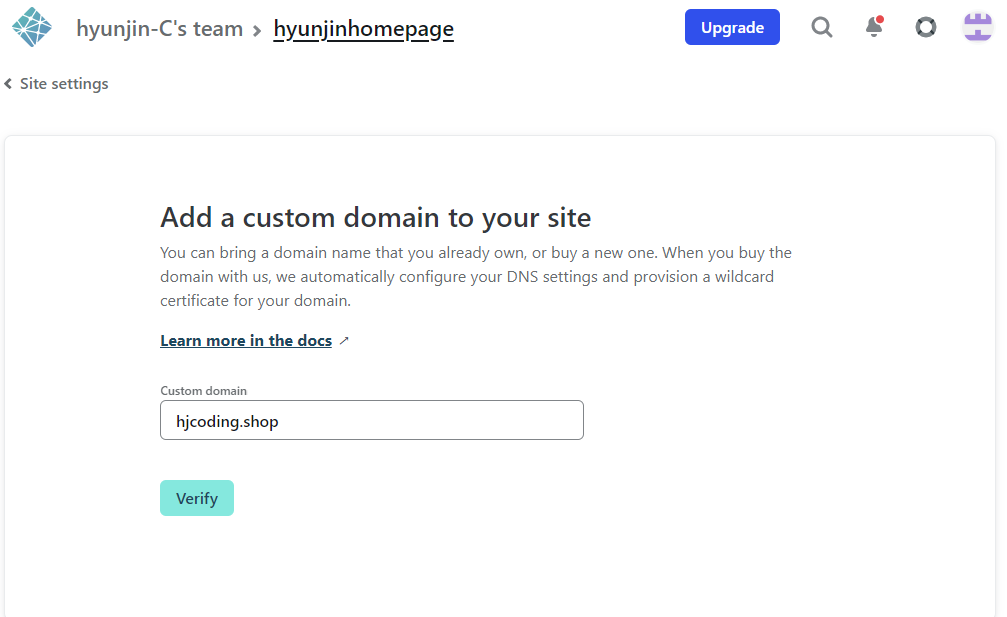 2. 도메인을 클릭하고 인증을 하면 뜨는 화면