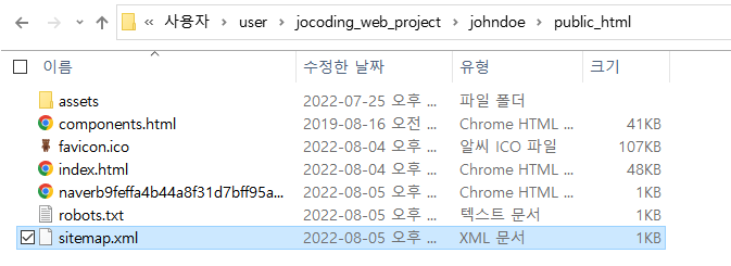 5. robots.txt 파일을 넣었던 위치에 sitemap.xml 파일도 위치시켜준다.