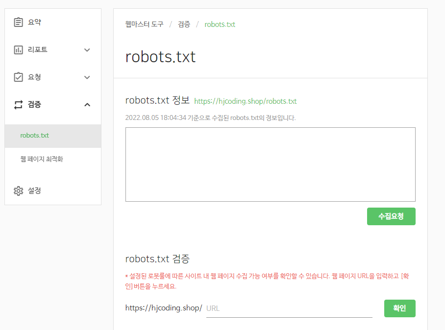 robots.txt 정보 수집 요청