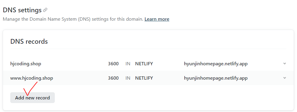 3. 도메인 소유권 확인 화면이 나오게 되는데 도메인 인증은 도메인 관리를 하고 있는 netlify에 다시 접속해서 해야 한다.