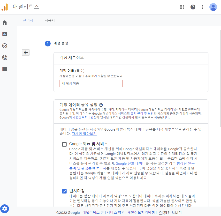 계정 설정, 속성 설정, 비즈니스 정보까지 입력을 해준다.
