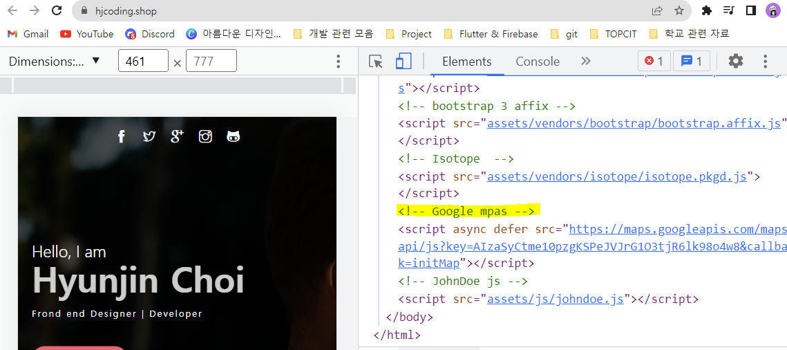 잘 추가되었음을 볼 수 있다. 이제 이 사이트에 들어올 때마다 head 태그에 있는 태그가 실행이 되면서 이 사이트에 들어가는 접속 정보가 구글로 전송이 되어 구글 애널리틱스에서 분석을 해준다.