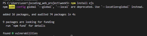 4. ejs를 설치한다.