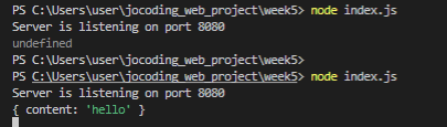 8. node index.js를 통해 실행해보면 다음과 같이 나온다.