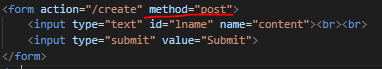 action을 create라는 주소로 get 방식으로 요청을 보냈을 때 content라는 값이 전달이 되도록 함.