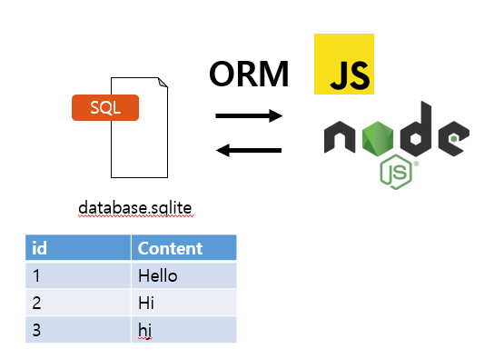 Nodejs가 SQL언어를 이용해서 명령을 내리면 SQLite 파일이 명령을 받아 값을 추가하거나 삭제하는 등 기능을 수행할 수 있다.