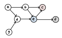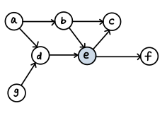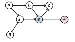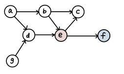 2. e가 갈 수 있는 곳은 c와 f가 있다. 그중 먼저 f로 이동한다.