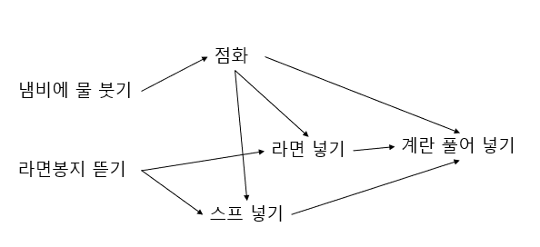 ex) 작업들의 우선순위, 학과 선수과목, 라면 끓이기