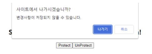 사용자가 페이지를 나갈 때(페이지의 x 버튼을 누를 때) 확인 메시지를 띄우고 싶을 때 사용한다.